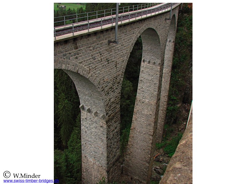 Schauen Sie sich natürlich die berümte Holzbrücke nebenan an und verweilen eine Zeit bei diesen drei Konstruktionen, denn die Rhätische Bahn ziehrt die beiden anderen Kunstwerken auch mit einer ganz schönen Konstruktion. Dokumente von Berchtold Weber & ViaStoria