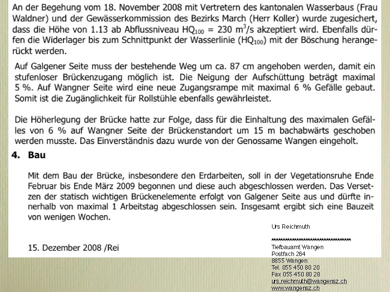 | Besitzer, Verantwortliche Instanz | Gemeinde Galgenen und Wangen (SZ) |