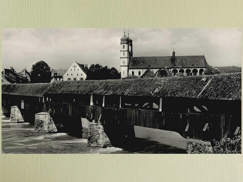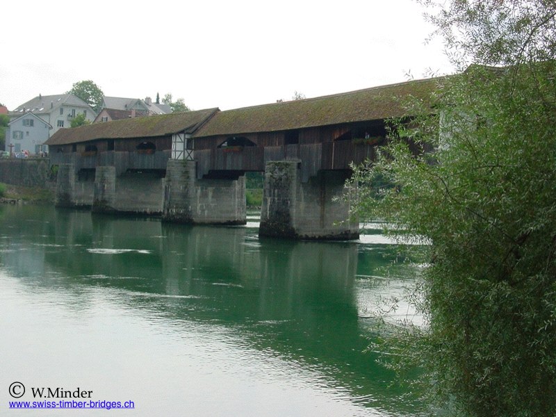 Lang ist diese Brücke, speziel auch, hatte es doch verschiedene Kontrukteure am Werk. Ich war dort bei "normalem" Rhein. Dieser kann aber auch stark ansteigen, wie die Zeitungsauschnitte belegen. Hoffentlich hält diese Brücke noch lange, denn soche verbindungen zwischen Ländern sind eben Brückenschläge! Sogar die beiden Postverwaltungen haben diese Konstruktion geehrt. Lesen Sie die Sagen von Säckingen.