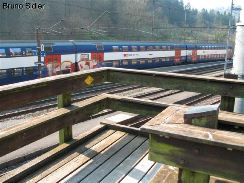 Leider musste diese Brücke abgerissen werden. Nun steht den Fussgängern doch noch ein Inseli zur verfügung um (sicher) auf die andere Strassenseite zu kommen. Leider war diese nicht gedeckt.