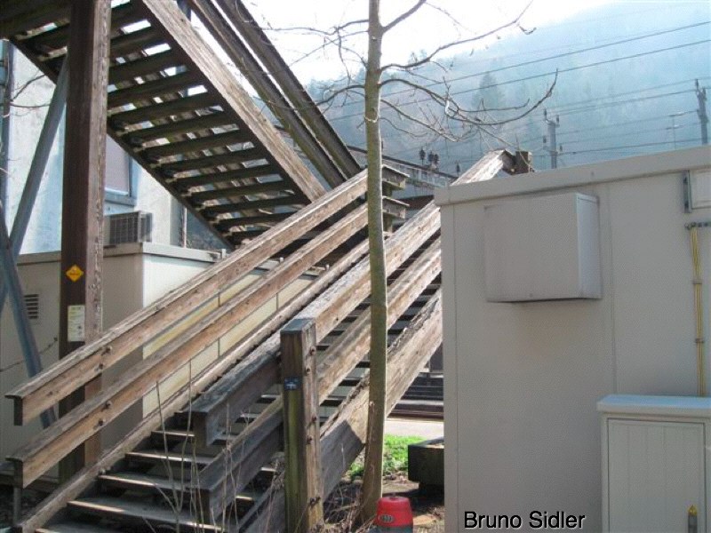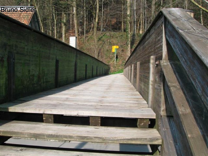 | Zusätzliche technische Informationen | F. Kropf: freibewitterte BSH-Pilotbrücken und Stege (Seite 130) 1988: Ta Resorzin-Phenol-Formaldehydharz, Chrom-Kupfer-Fluorsalz Kesseldruckimprägnierung der sägefrischen Lamellen, 3* hydrophobe Lasur, mittelbraun, einwandfrei, besser als ölig imprägniertes Vergleichsobjekt Sihlbrugg 1983. |
