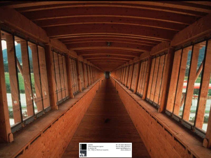 Gelungener gedeckter übergang über die Autobahn. Gute Lichteinwirkung auf die Konstruktion.