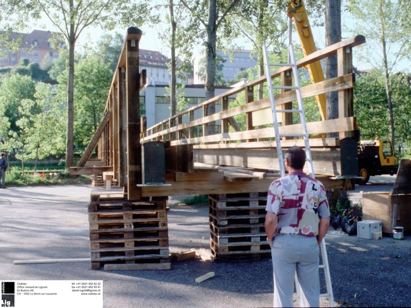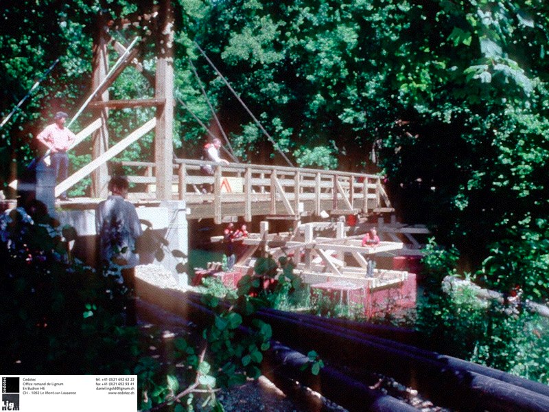 Pont haubané à la sortie de la gorge de l'Orbe pitoresque, avant que ce ruisseau devient la Thielle / Ziel. Lieu assez difficile pour acceder, pour cela la flotaison était choisit pour amener le pont à sa place.
