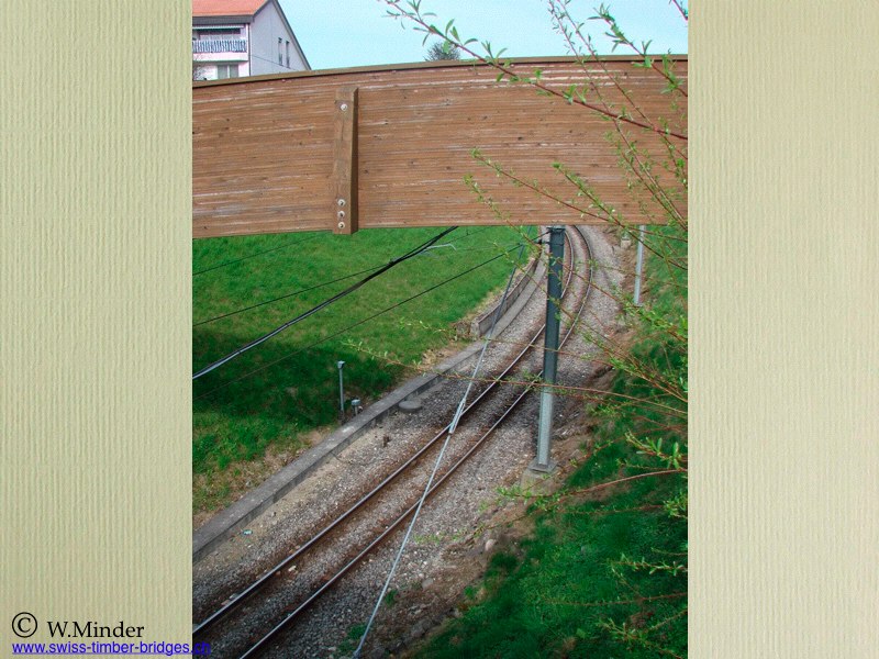 Passerelle pour des habitants de l'autre côté de la Brouette, train relient Bercher à Lausanne, car la route tout proche est bien fréquanté par voitures et camions.
